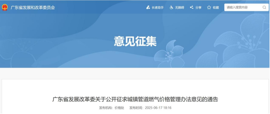 为贯彻落实国家天然气价格改革精神,完善管道燃气价格形成机制,加强我省配气价格管理,促进燃气行业健康发展,根据《中华人民共和国价格法》《广东省实施〈中华人民共和国价格法〉办法》和《关于加强配气价格监管的指导意见》(发改价格〔2017〕1171号)等规定,我委在原管理办法的基础上,结合前期意见收集情况,起草了《广东省发展改革委城镇管道燃气价格管理办法(征求意见稿)》。现向社会各界公开征求意见,欢迎有关单位和各界人士于2025年6月26日前通过信函、传真或电子邮件等方式提出宝贵意见。